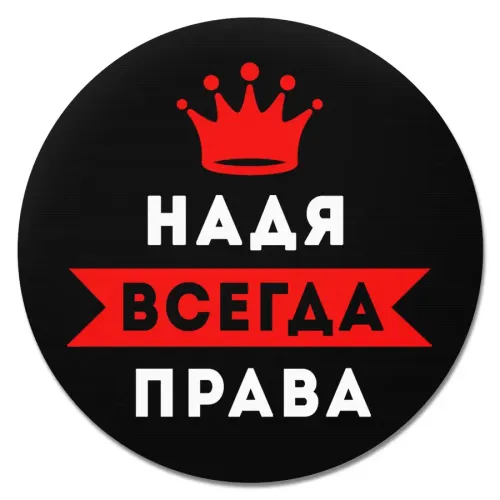 Именной коврик для компьютерной мыши круглой формы с надписью «Надежда Всегда права».