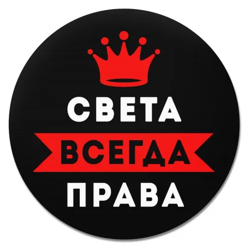 Коврик для компьютерной мыши с именным изображением «Светлана Всегда права». Диаметр 20 см.