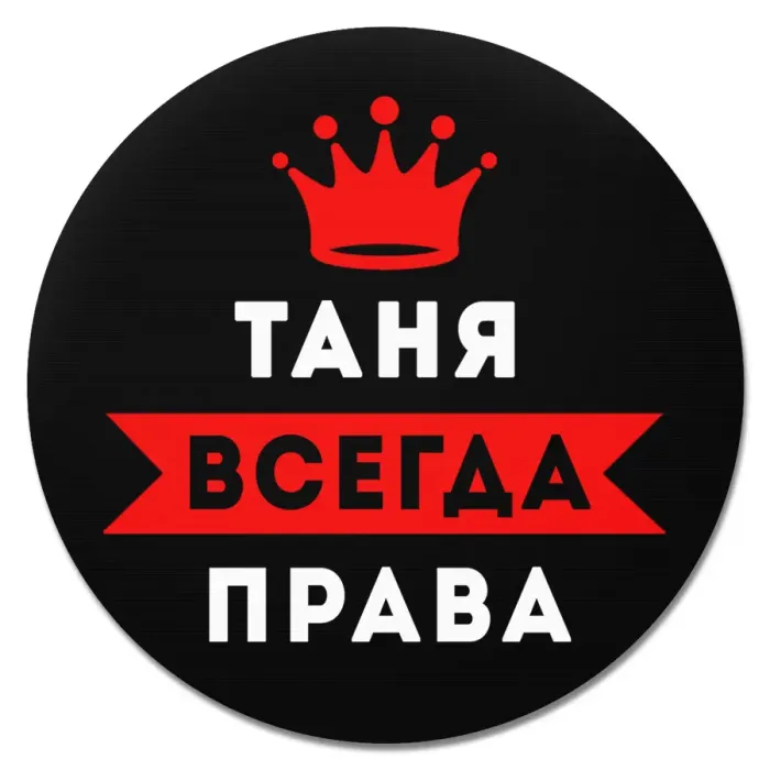 Коврик для мыши именной Татьяна Всегда права, d.20см KM1405