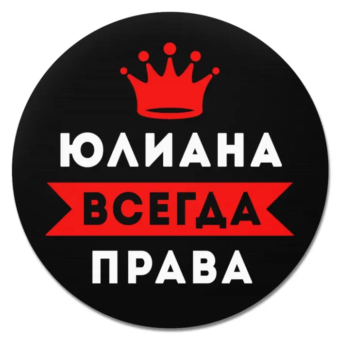 Коврик для мыши именной Юлиана Всегда права, d.20см KM1411