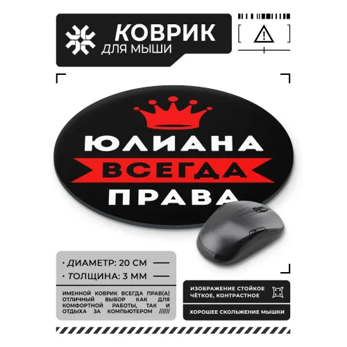 Коврик для компьютерной мыши с именным изображением «Юлиана Всегда права».