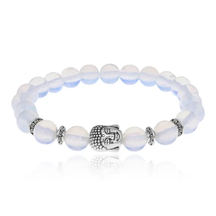 Браслет-амулет Будда с синт. камнем Лунный камень 8мм BSH-01-11S