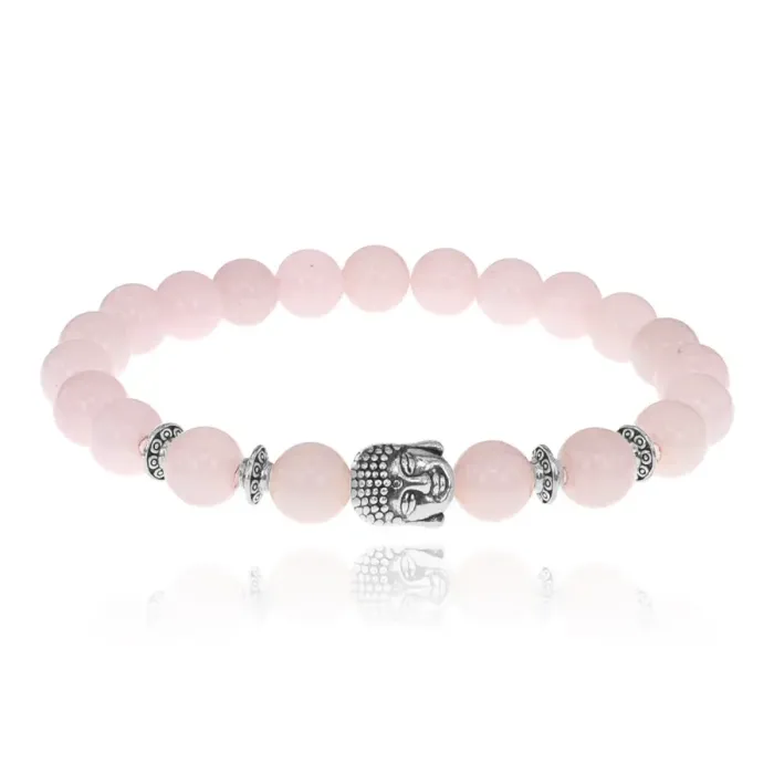 Браслет-амулет Будда с нат. камнем Розовый кварц 8мм BSH-01-15S
