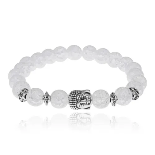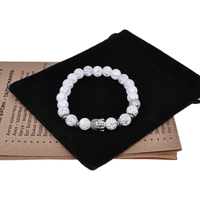Браслет-амулет Будда с синт. камнем Сахарный кварц 8мм BSH-01-16S