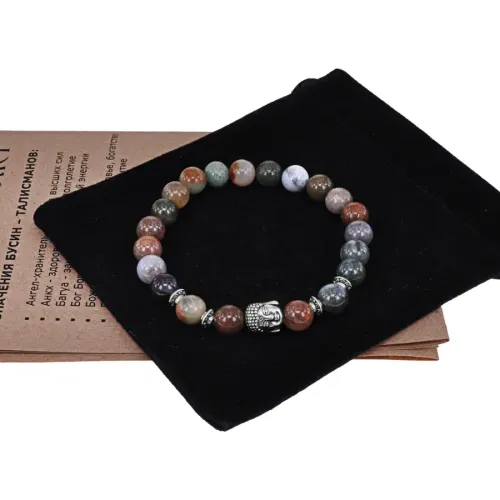 Браслет-амулет Будда с нат. камнем Яшма 8мм BSH-01-25S