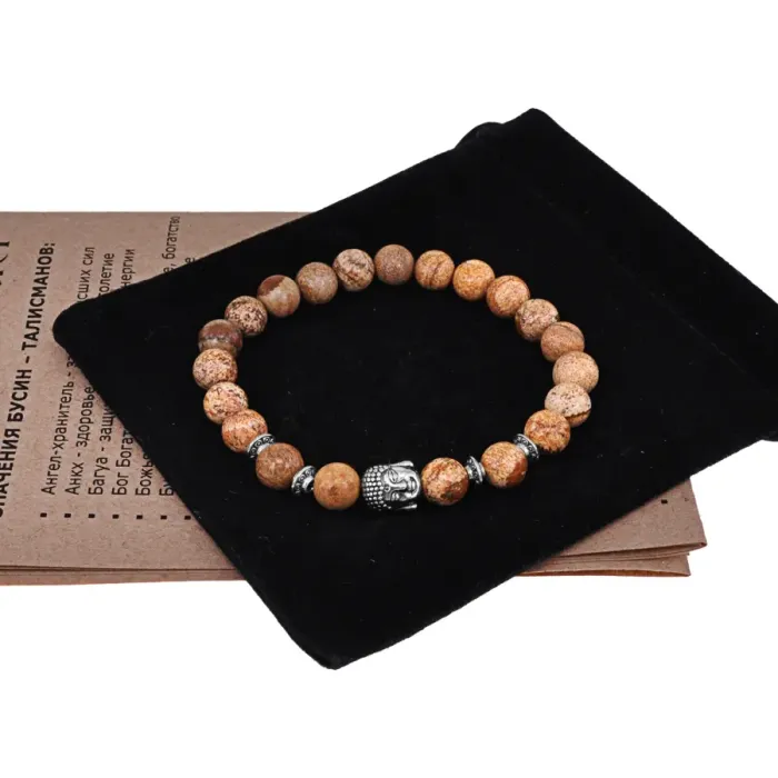 Браслет-амулет Будда с нат. камнем Песочная яшма 8мм BSH-01-30S