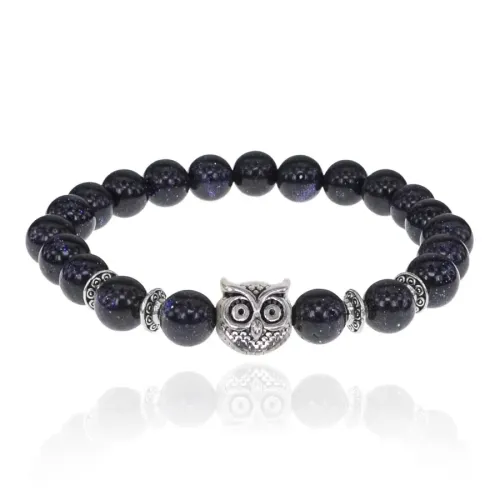 Браслет-амулет Сова с синт. камнем Синий авантюрин 8мм BSH-03-02S