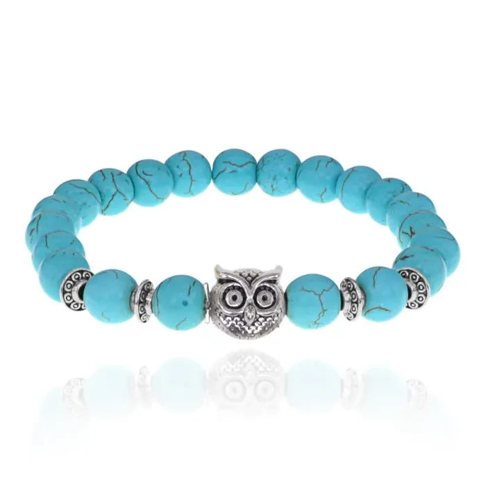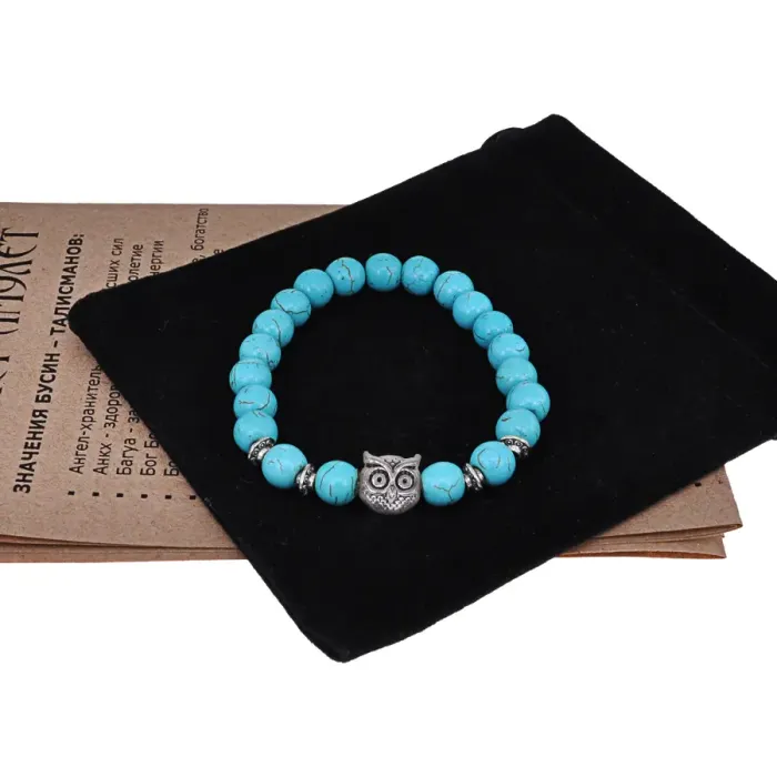 Браслет-амулет Сова с синт. камнем Бирюза 8мм BSH-03-05S