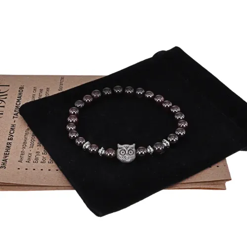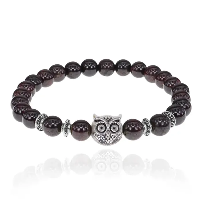 Браслет-амулет Сова с нат. камнем Гранат 8мм BSH-03-06S