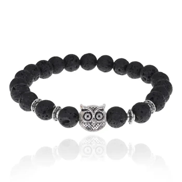 Браслет-амулет Сова с нат.камнем Лава 8мм BSH-03-09S