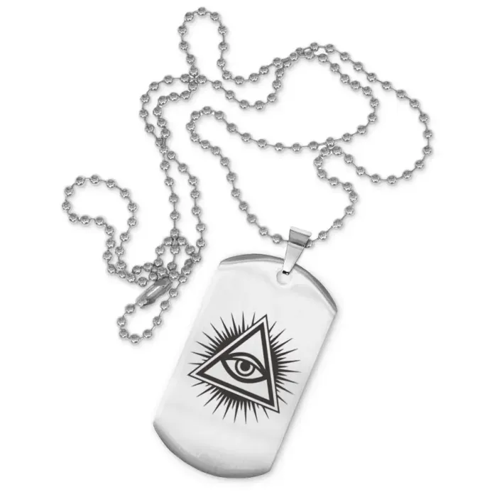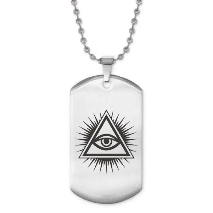 Сувенирный жетон на цепочке «Всевидящее око» из нержавеющей стали с лазерной гравировкой.