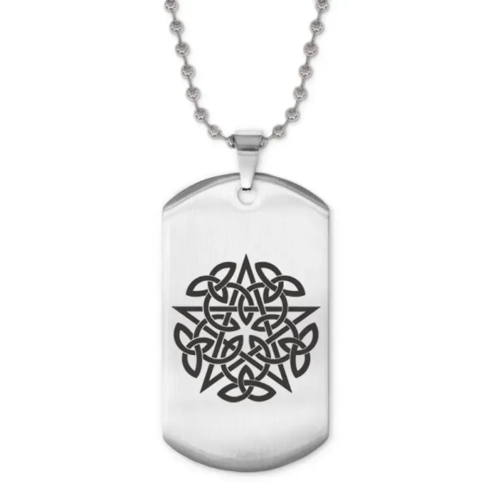 Сувенирный жетон на цепочке с изображением пентаграммы. Изготовлен из полированной нержавеющей стали с лазерной гравировкой.