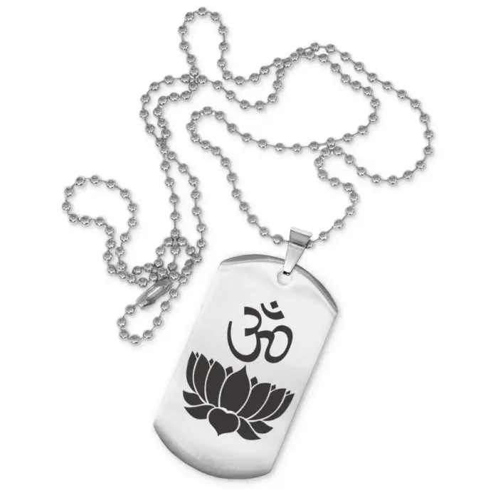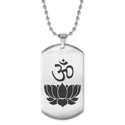 Сувенирный жетон на цепочке с изображением символа Ом и цветка лотоса.