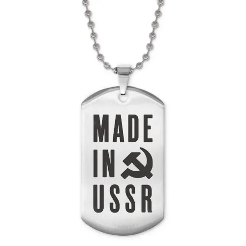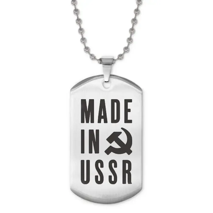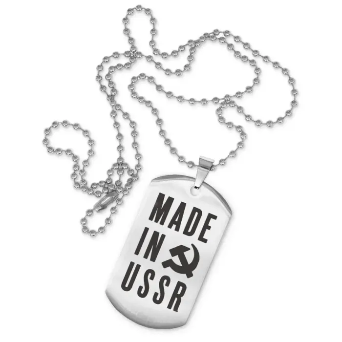 Размеры и комплектация: Размер жетона 50x28 мм, длина цепочки 60 см с возможностью регулировки. Упаковка — прозрачный пакет.