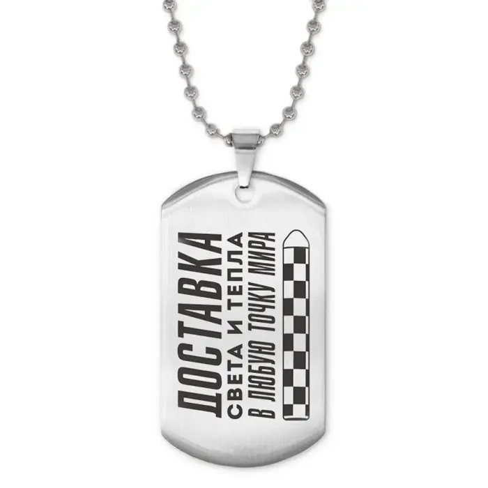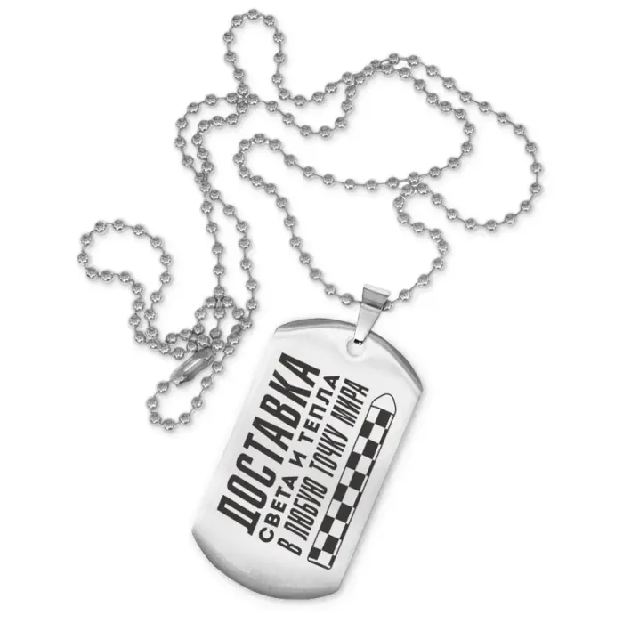 Сувенирный жетон на цепочке из нержавеющей стали с лазерной гравировкой.