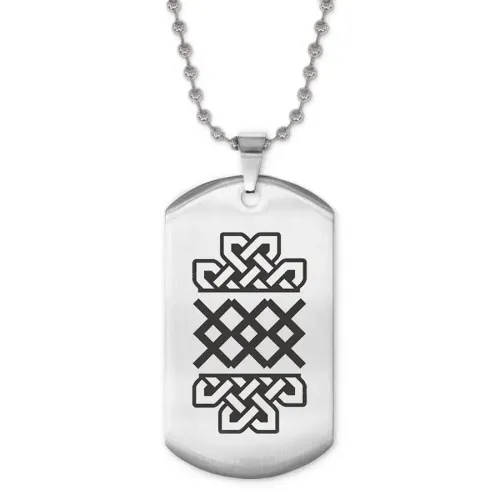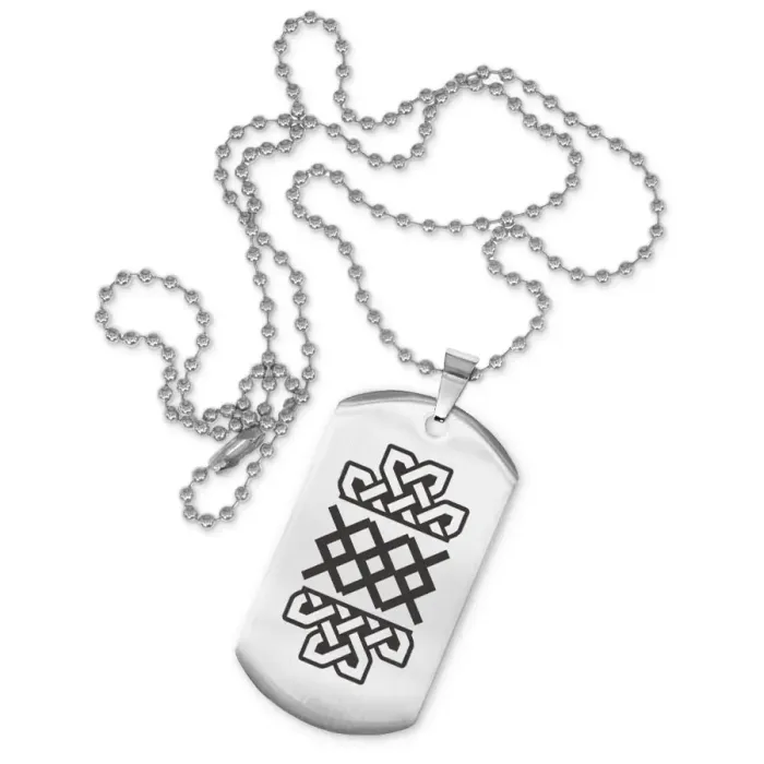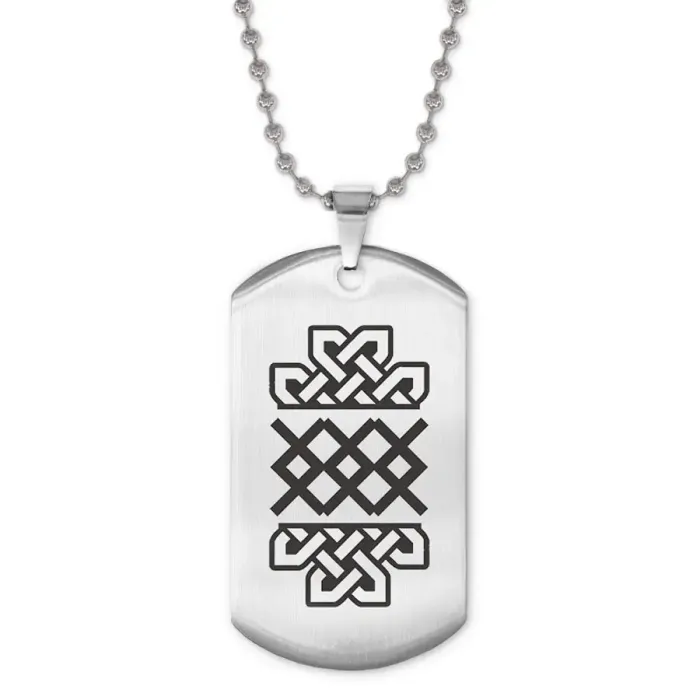 Размеры и комплектация: Размер жетона: 50x28 мм. Длина цепочки: 60 см, регулируется. Упаковка: прозрачный пакет.