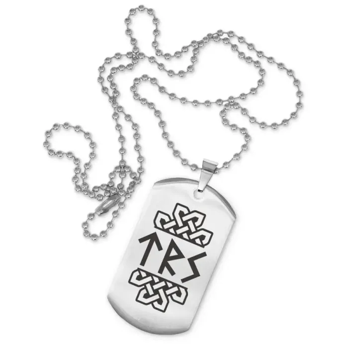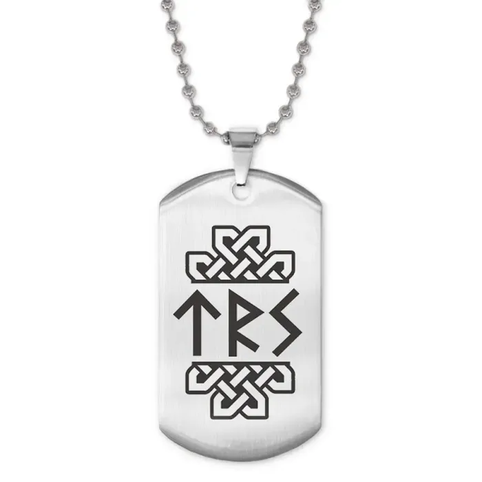 Жетон на цепочке из полированной нержавеющей стали с лазерной гравировкой рун.