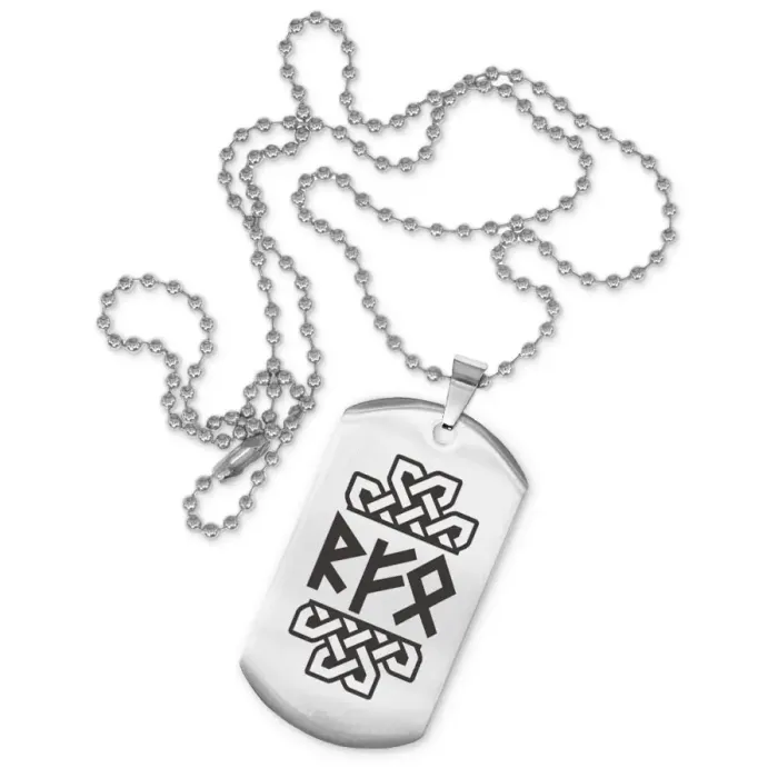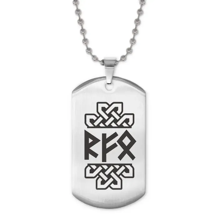 Сувенирный жетон на цепочке из нержавеющей стали с лазерной гравировкой рун.