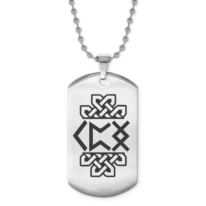 Жетон на цепочке «Улучшение самочувствия» — сувенирный аксессуар из полированной нержавеющей стали с лазерной гравировкой рун.