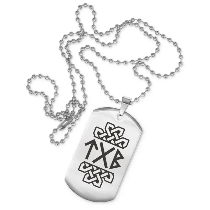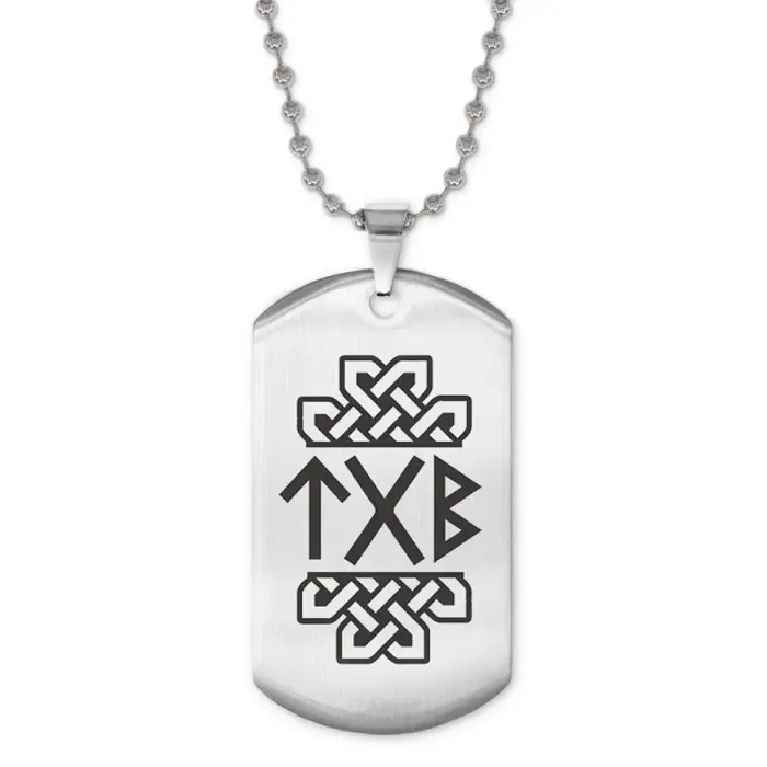 Сувенирный жетон на цепочке из нержавеющей стали с лазерной гравировкой рун.