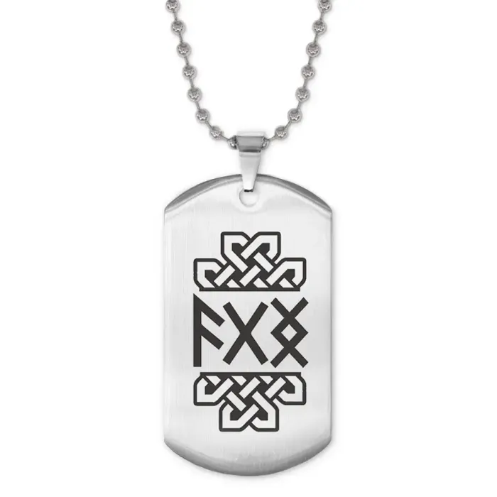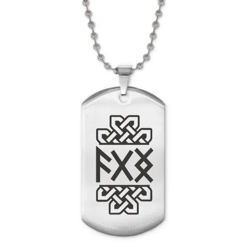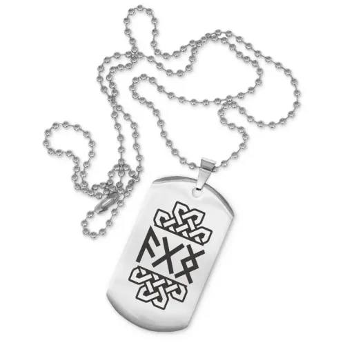 Жетон на цепочке из нержавеющей стали с лазерной гравировкой рун.