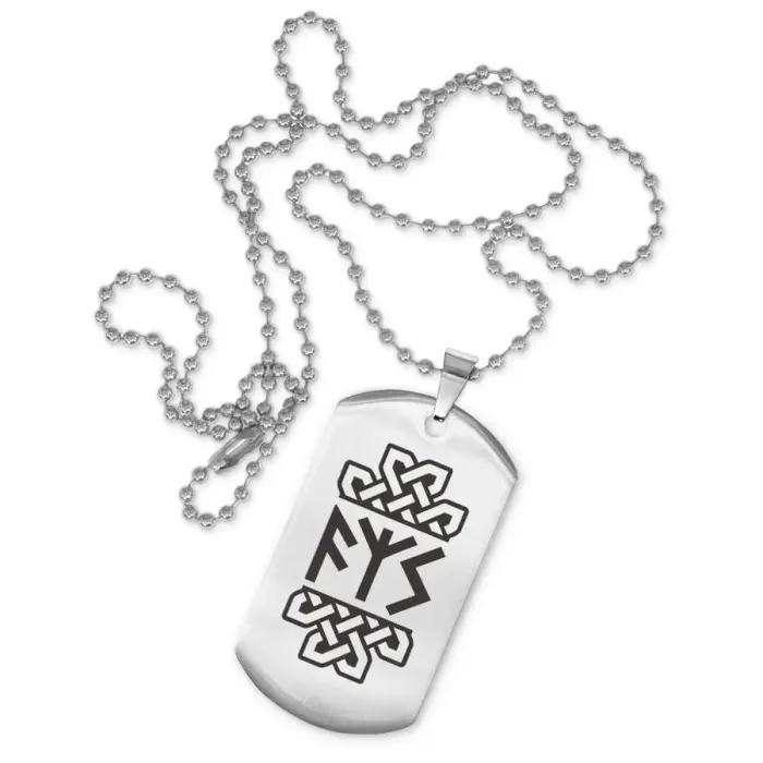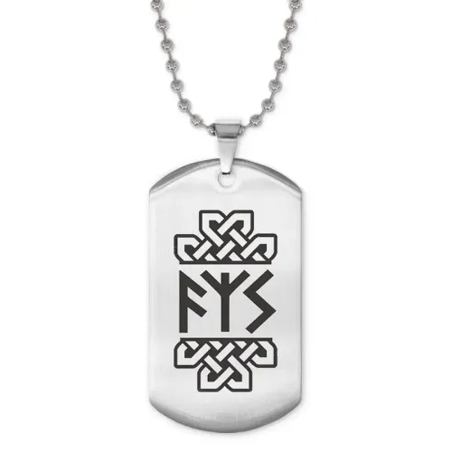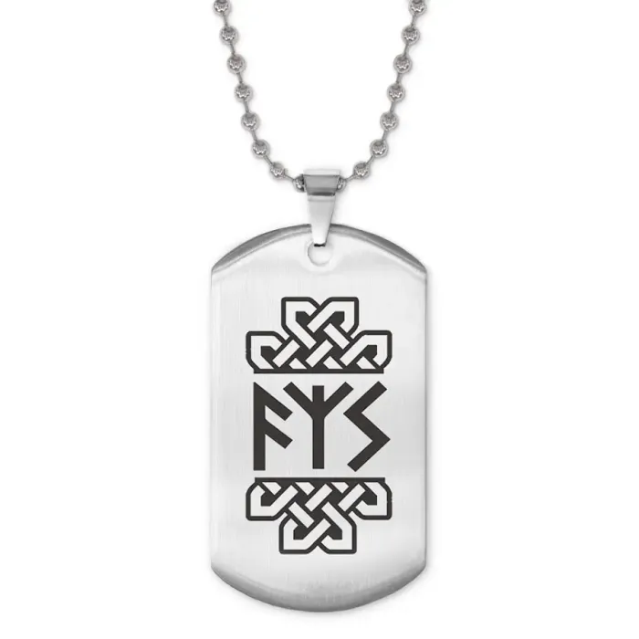 Сувенирный жетон на цепочке. Материал — нержавеющая сталь. Дизайн включает лазерную гравировку с одной стороны.