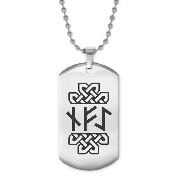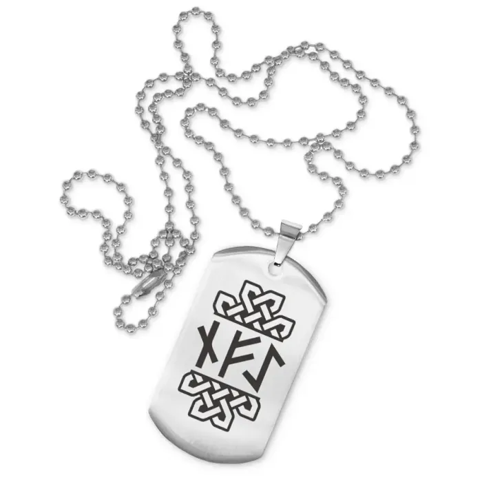 Жетон на цепочке «Преодоление кризиса» — сувенирный аксессуар из полированной нержавеющей стали с лазерной гравировкой рун.