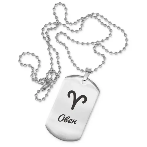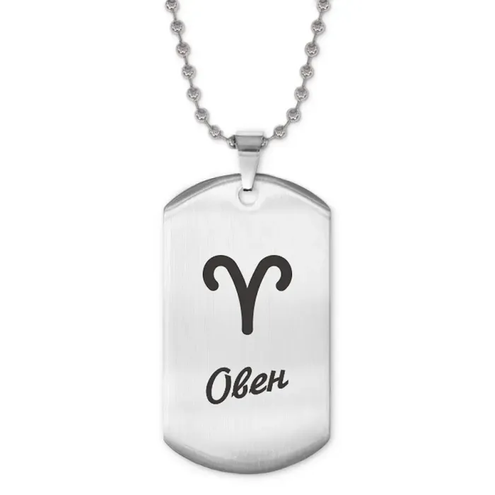 Жетон на цепочке для родившихся под знаком Овна. Изготовлен из нержавеющей стали с зеркальной полировкой и лазерной гравировкой.