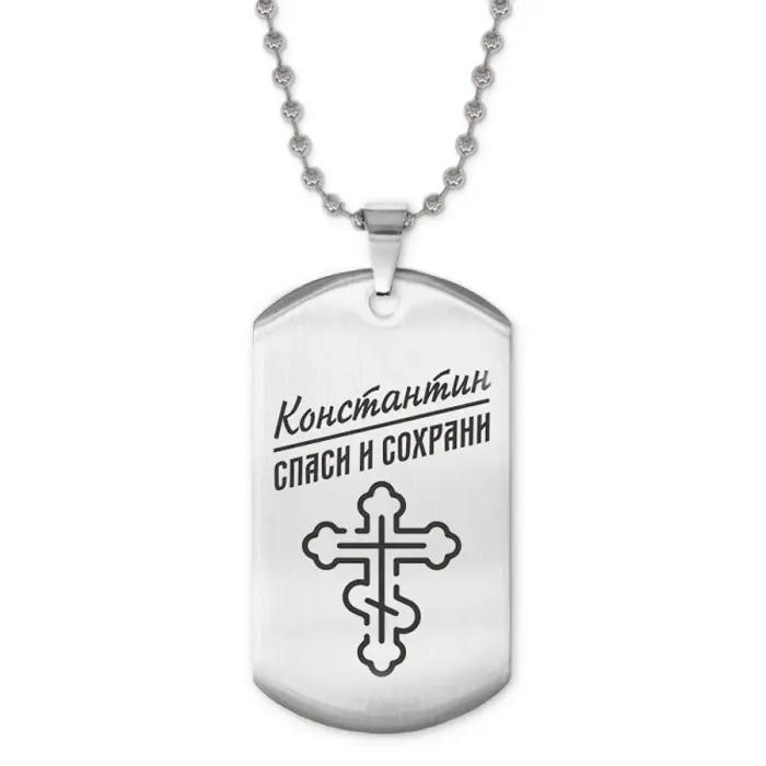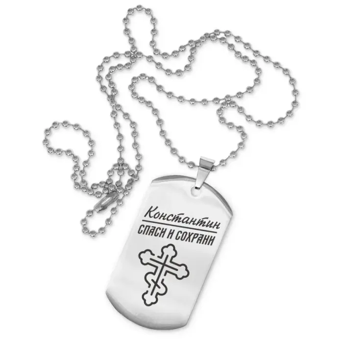 Мужской жетон на цепочке «Константин» из нержавеющей стали с лазерной гравировкой.