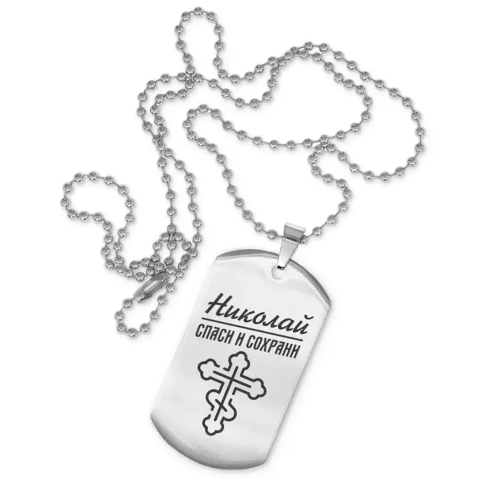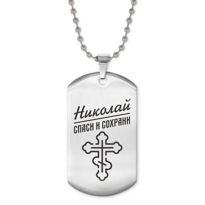 Мужской именной кулон-жетон из нержавеющей стали с лазерной гравировкой.
