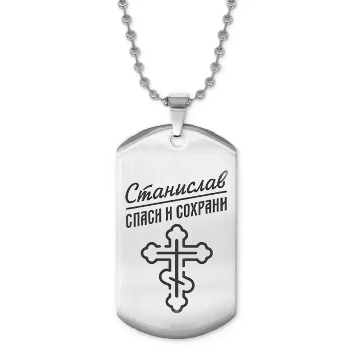 Мужской сувенирный жетон на цепочке из нержавеющей стали с лазерной гравировкой.