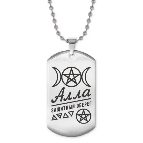 Размеры и комплектация: Размер жетона: 50x28 мм. Длина цепочки: 60 см с возможностью регулировки. Упаковка: прозрачный пакет.