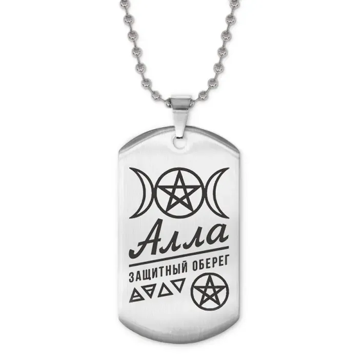 Женский жетон на цепочке из нержавеющей стали с лазерной гравировкой.