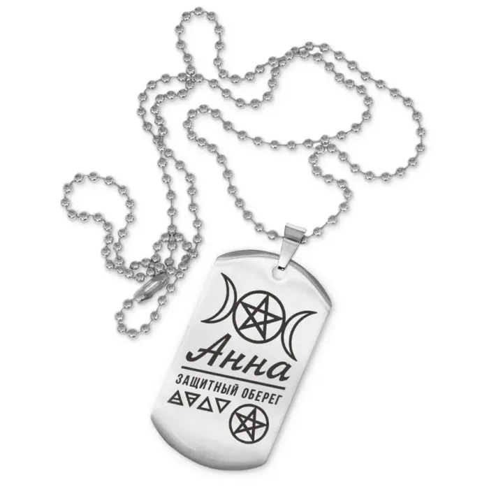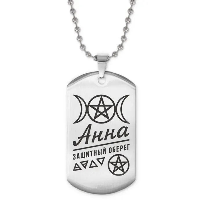 Женский именной жетон на цепочке из нержавеющей стали с лазерной гравировкой.