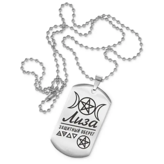 Жетон на цепочке женский Елизавета — кулон из нержавеющей стали с лазерной гравировкой.