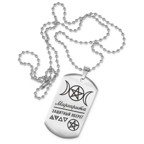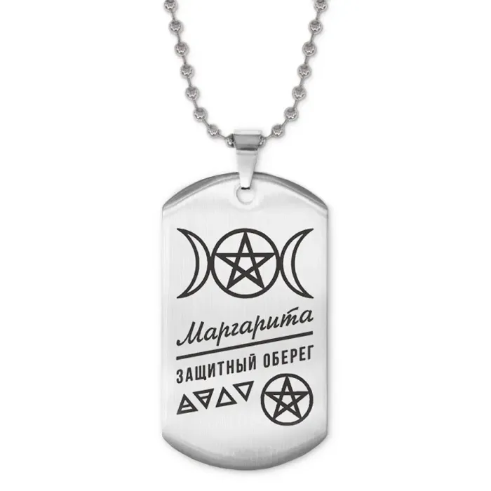 Жетон на цепочке женский 'Маргарита' из нержавеющей стали с лазерной гравировкой.