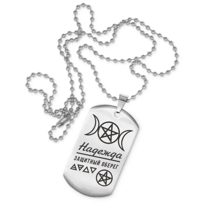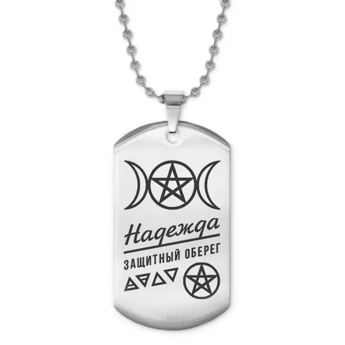 Жетон на цепочке "Надежда" — это стильный и элегантный аксессуар, который станет отличным подарком для близкого человека. Изготовленный из высококачественной нержавеющей стали с зеркальной полировкой, этот кулон-жетон привлекает внимание своим утончённым дизайном.