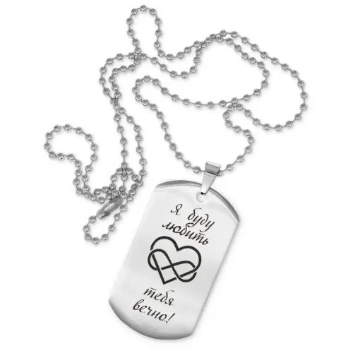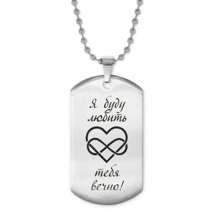 Сувенирный жетон на цепочке с лазерной гравировкой надписи «Я буду любить тебя».