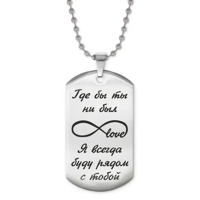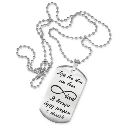 Сувенирный жетон на цепочке из нержавеющей стали с лазерной гравировкой.