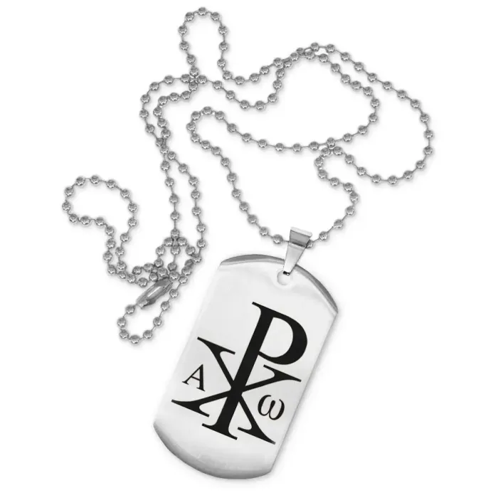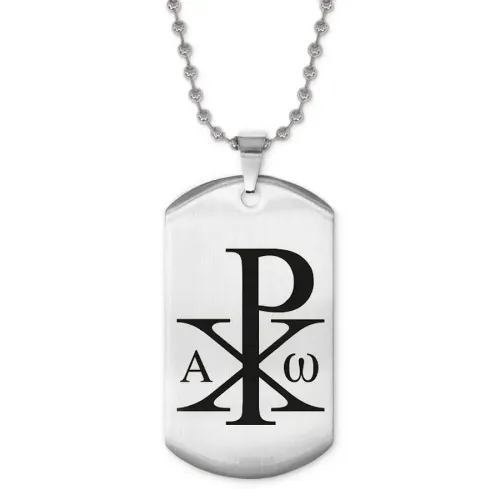 Жетон на цепочке «Монограмма Христа» — сувенирный аксессуар из нержавеющей стали с лазерной гравировкой.