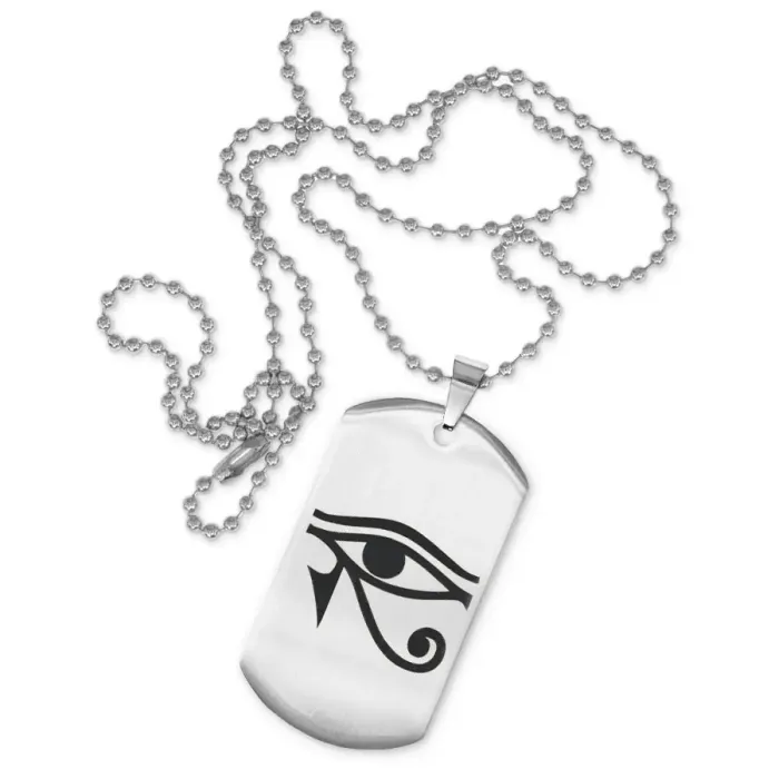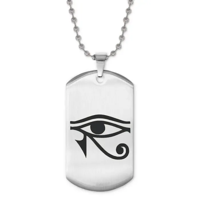 Сувенирный жетон на цепочке с изображением Око Ра. Изготовлен из нержавеющей стали с зеркальной полировкой.