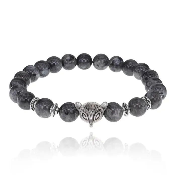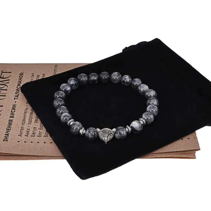 Браслет-амулет Лиса с нат. камнем Лабрадор 8мм BSH-04-08S