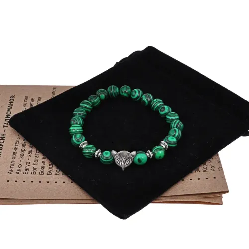 Браслет-амулет Лиса с синт. камнем Малахит 8мм BSH-04-12S