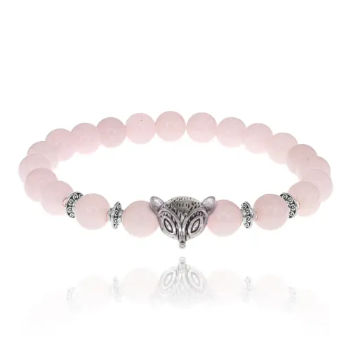 Браслет-амулет Лиса с нат. камнем Розовый кварц 8мм BSH-04-15S