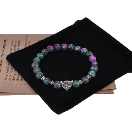 Браслет-амулет Лиса с синт. камнем Цоизит 8мм BSH-04-22S