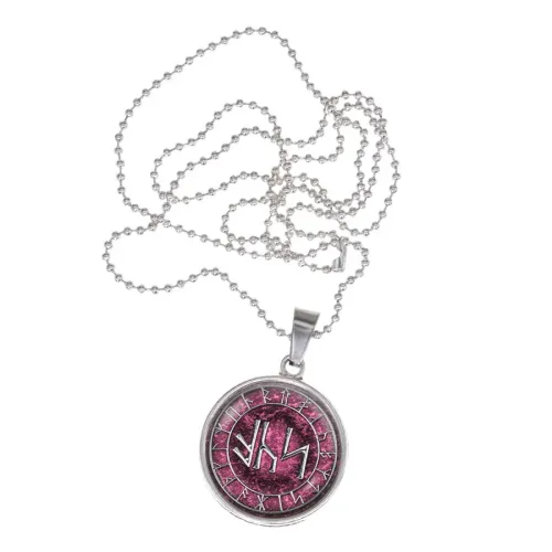Славянский амулет Привлечение любви — кулон из бижутерного сплава с покрытием под серебро. Изображение рунической формулы расположено под выпуклой стеклянной линзой.