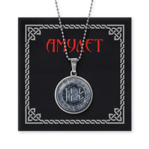 Материал и изготовление: Бижутерный сплав с покрытием под серебро. Изображение со славянской рунической формулой находится под выпуклой стеклянной линзой диаметром 20 мм.