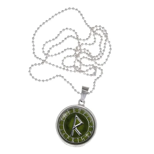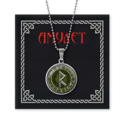 Славянский амулет-кулон из бижутерного сплава с изображением под стеклянной линзой.