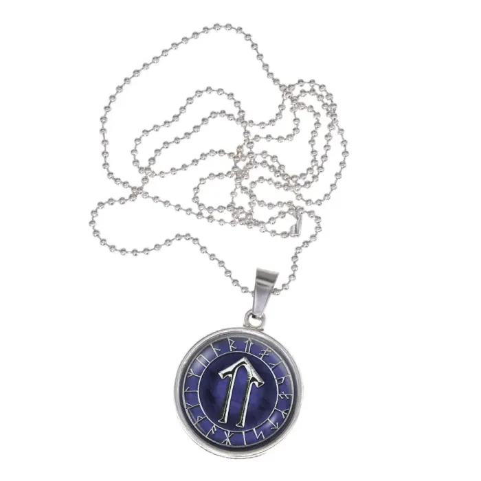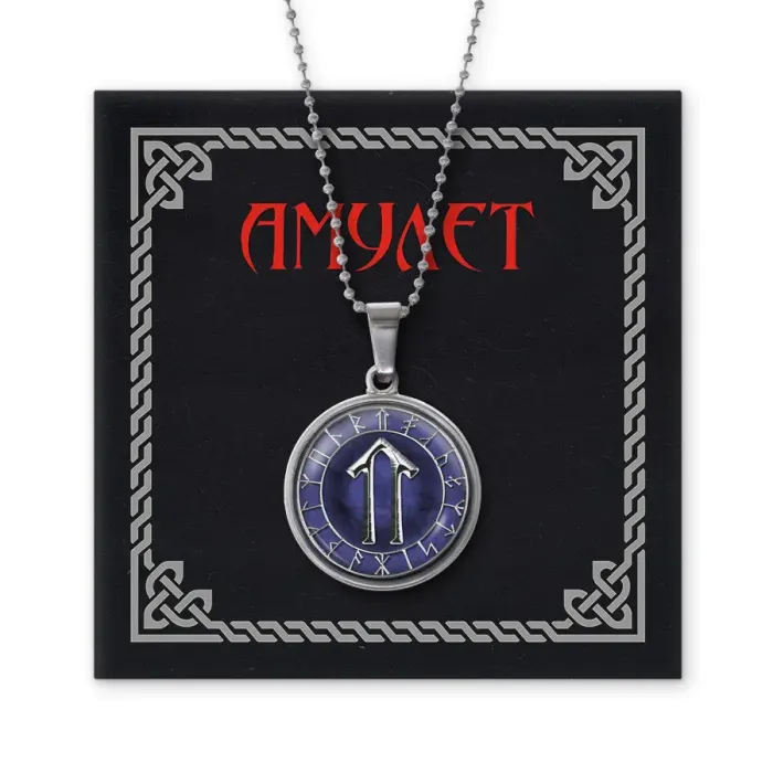 Славянский амулет Ветер — кулон из бижутерного сплава с покрытием под серебро. Изображение расположено под выпуклой стеклянной линзой диаметром 20 мм.