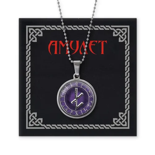 Материал и изготовление: Бижутерный сплав с покрытием под серебро. Изображение руны расположено под выпуклой стеклянной линзой диаметром 20 мм.